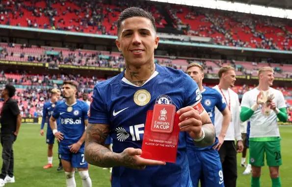 最终经过评选,恩佐当选足总杯官方全场最佳球员,并在赛后领取了奖杯。